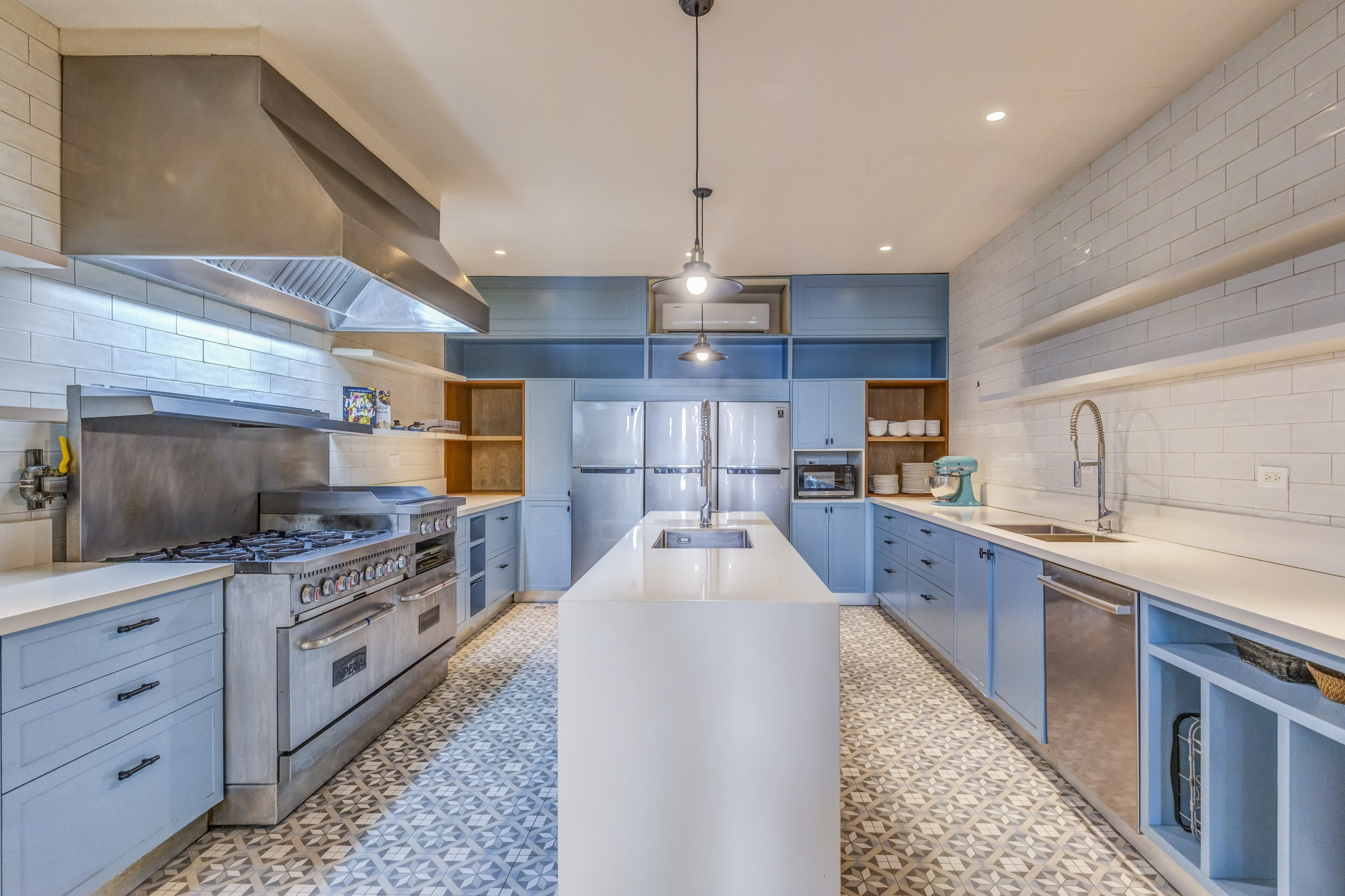 The second building have 4 bedrooms, 2 rooms of them have King size beds and the other 2 rooms have 2 full size beds. Fully equipped kitchen, extensive living room terrace & dining room, private courtyard with swimming pool. All rooms include air conditioning, TV, private bathroom and walk-in closet.
