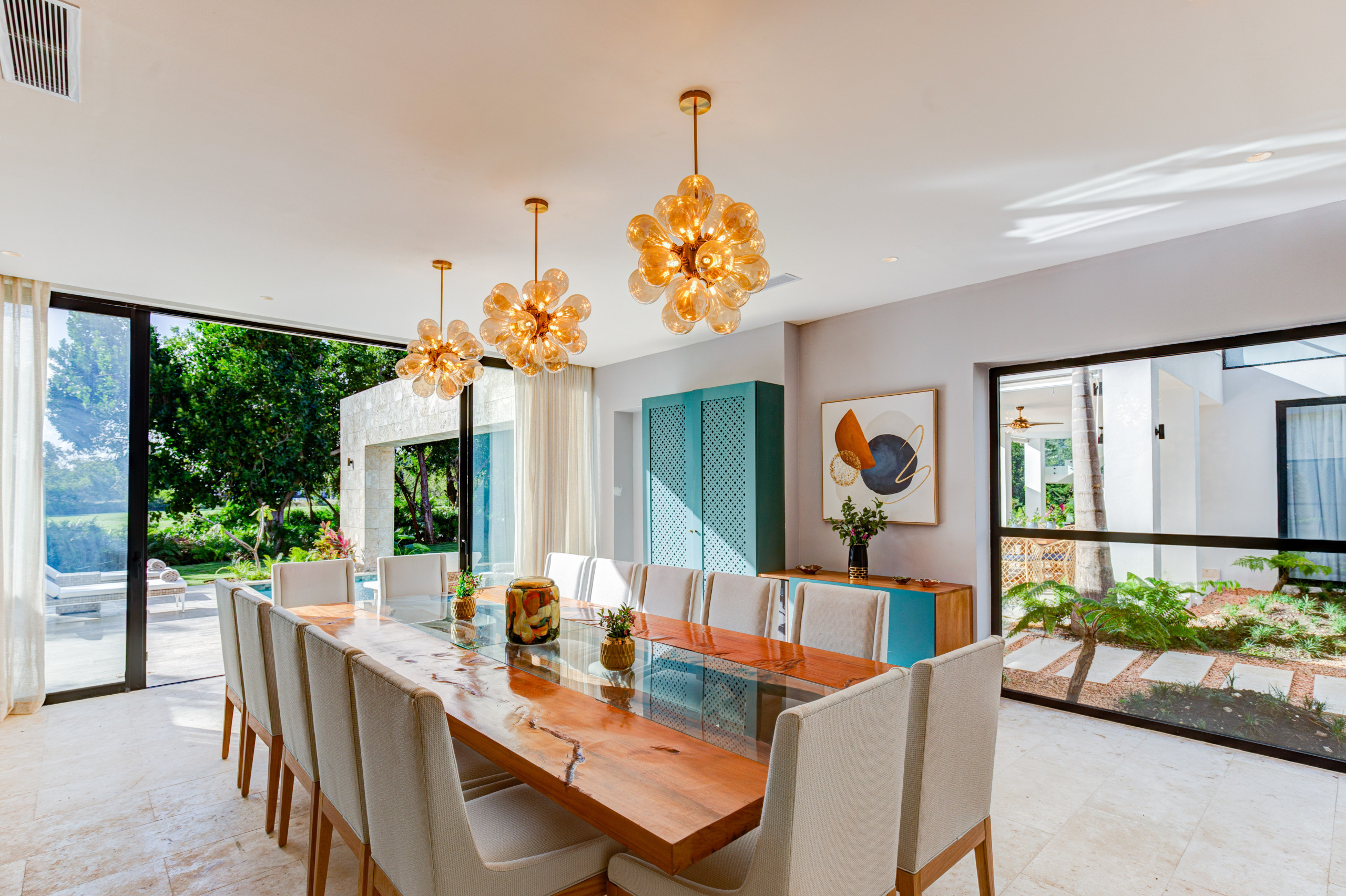 Villa Reino is a luxury property with a modern design, created to offer the highest standards of comfort and style. Its contemporary and elegant decor generates a relaxed and sophisticated atmosphere, ideal for those seeking an exclusive experience in a tropical setting.