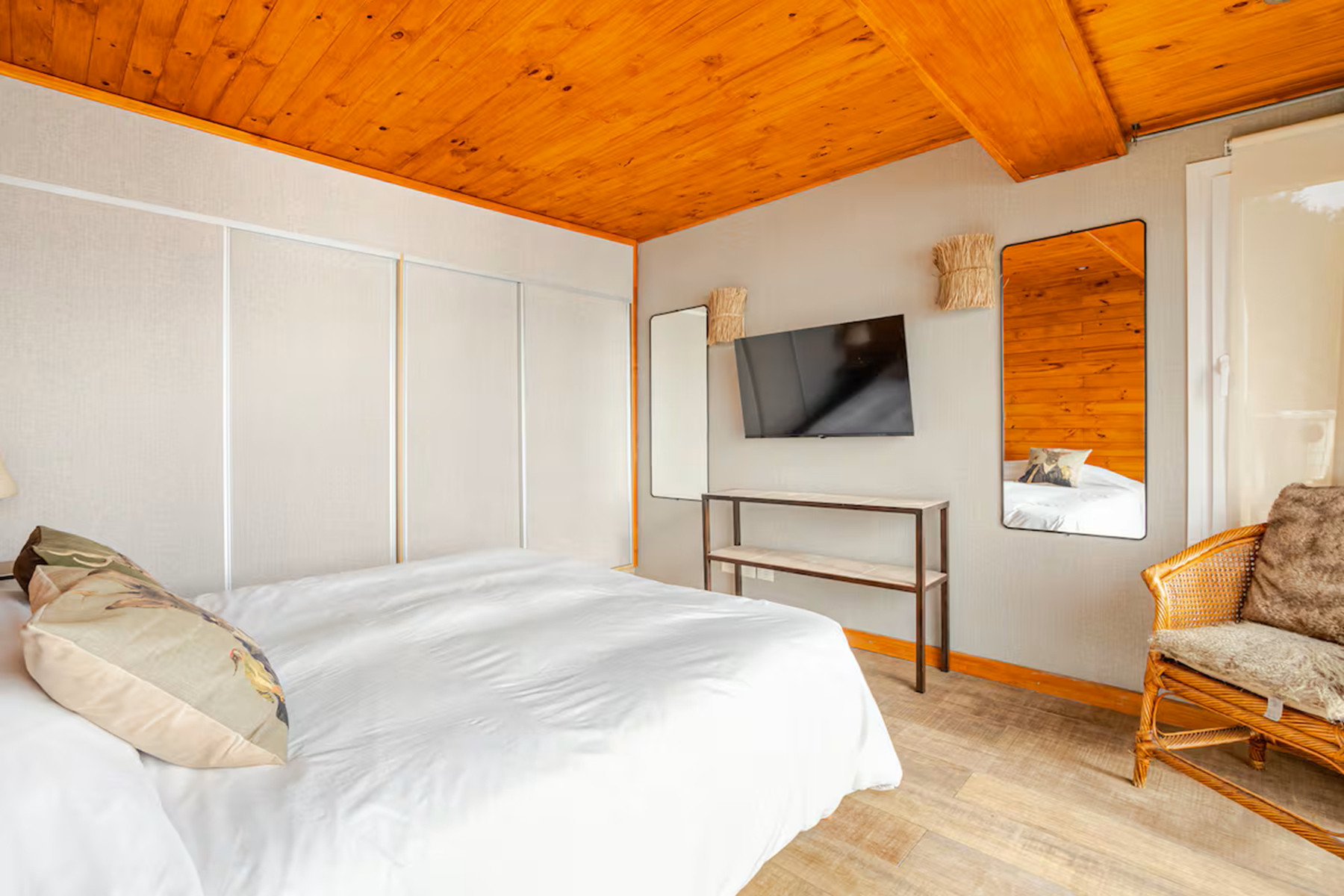 Il baita a San Carlos de Bariloche ha 1 camera(e) da letto e capacità per 3 persone. Alloggio di 70 m², posizionato in fronte mare, con vista alla montagna e al lago. Ha giardino arredato, terrazza, lavatrice, barbecue, ferro da stiro, accesso internet (wifi), balconi, riscaldamento centralizzato, parcheggio all'aperto in vicino alla struttura, 1 Televisore.La cucina americana, a gas, è attrezzata con frigorifero, microonde, forno, lavastoviglie, utensili da cucina, caffettiera, tostapane e bollitore.