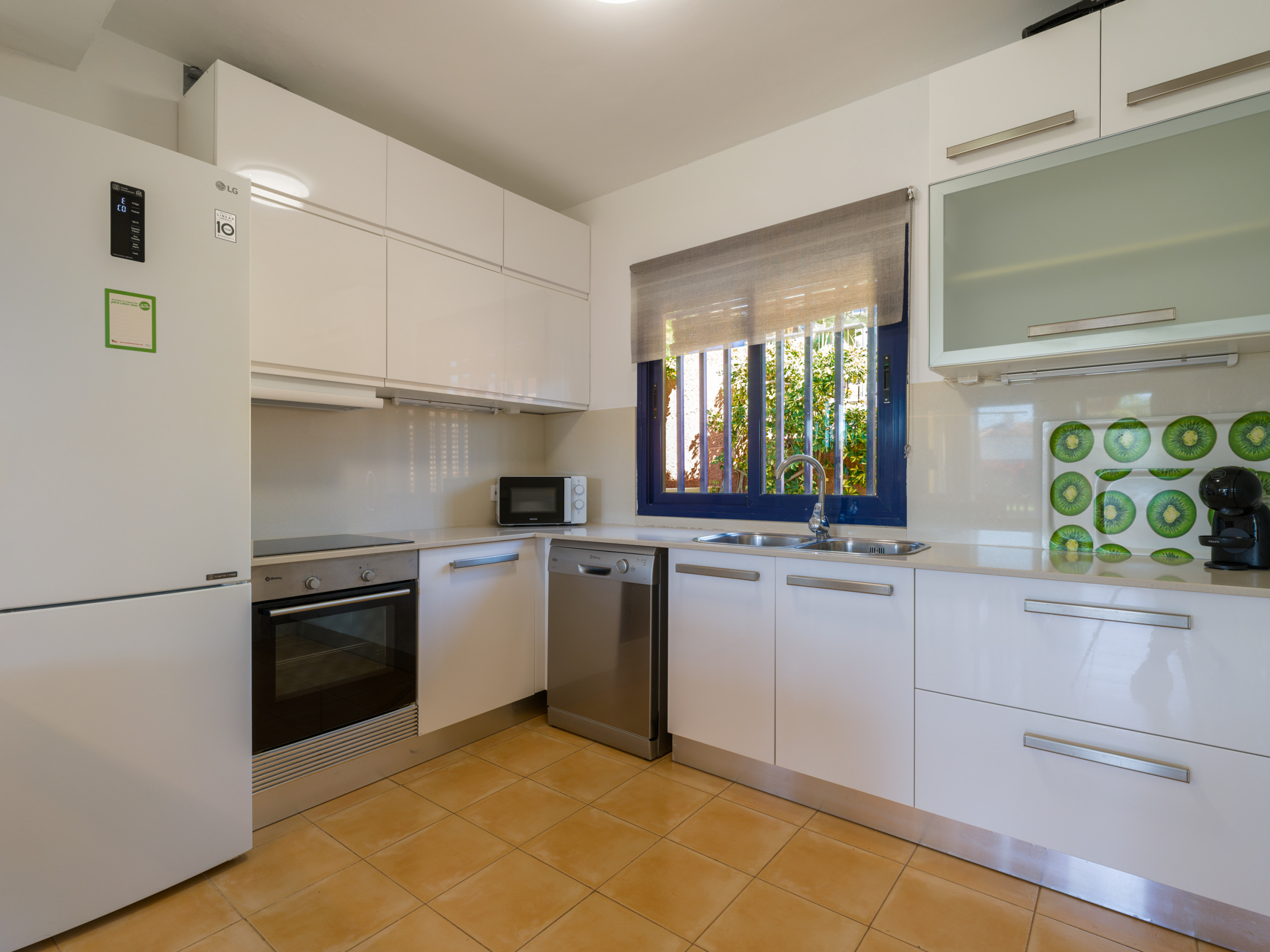 Dispone di un ampio giardino con mobili e amache ideali per mangiare, prendere il sole e rilassarsi. Il terreno è recintato e dispone anche di una terrazza di 10 m² sul retro. Ha assolutamente tutto ciò di cui hai bisogno per poter trascorrere una vacanza ideale come se fossi a casa, come ferro da stiro, accesso illimitato a Internet (Wi-Fi), asciugacapelli, piscina condominiale e 2 Smart TV. Elettrodomestici di qualità: piano cottura in vetroceramica , frigorifero, microonde, forno, congelatore, lavatrice, lavastoviglie, stoviglie / posate, utensili / cucina, macchina per il caffè, tostapane, bollitore e spremiagrumi.