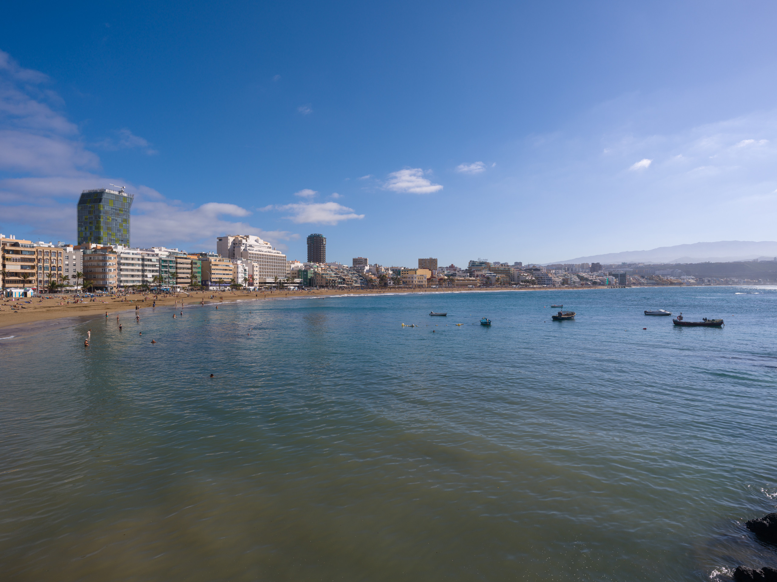 Las Canteras è una delle migliori spiagge urbane del paese e del mondo, con bel tempo quasi tutto l'anno. Il luogo della capitale per rilassarsi, dove il tempo si ferma e dove si può fare sport in qualsiasi giorno della settimana, indossando un costume da bagno, bikini, occhialini e boccaglio, pagaia (racchette da spiaggia) o tavola da surf.