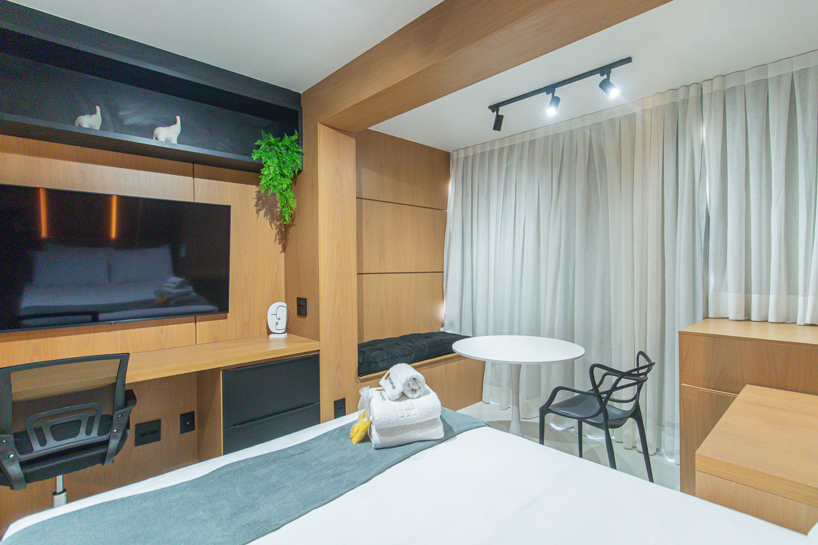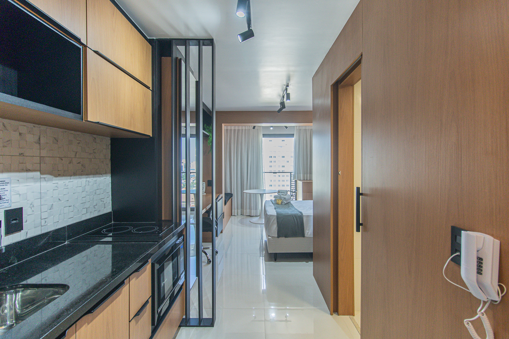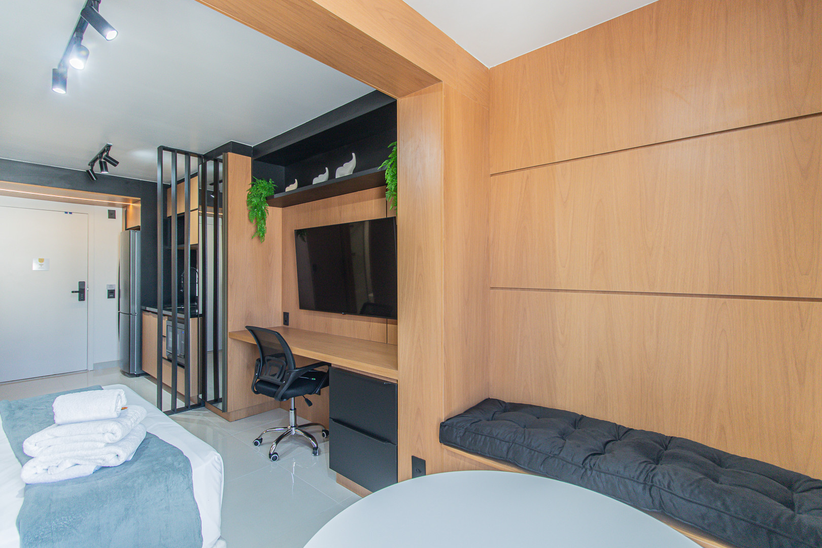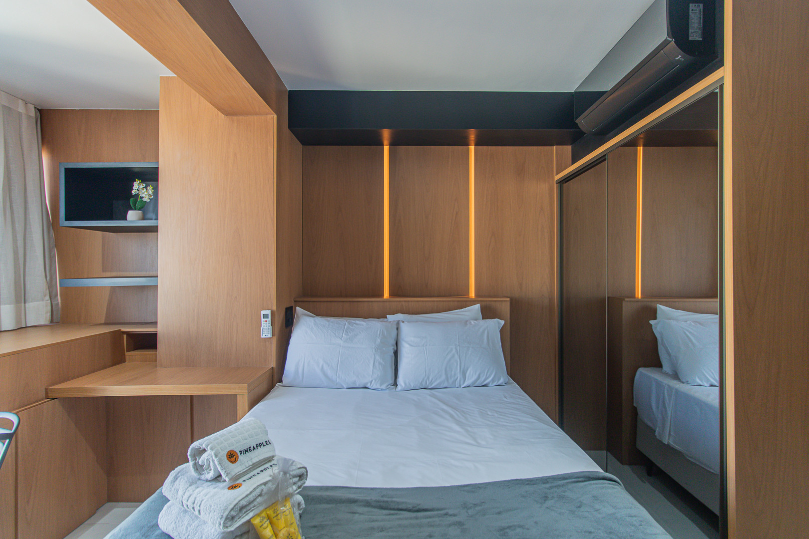 Lo studio a São Paulo ha 1 camera(e) da letto e capacità per 2 persone. Alloggio di 18 m² arredato con gusto e nuova costruzione. Si trova a 60 m dalla stazione degli autobus "Av. Pompeia, 588", 73 m dal supermercato "Supermercado Pão de Açúcar", 74 m dalla stazione degli autobus "Av. Ministro Ferreira Alves, 458", 99 m "Vila do Chaves Café", 270 m "Di Carmo Cantina Pizza Bar", 300 m "Santa Fé O Cupim", 300 m "Granno Doro Cafés Especiais", 500 m "Angusteria Pompeia", 600 m "Hospital São Camilo - Unidade Pompeia", 650 m dal supermercato "Supermercado Cavalo de Ouro", 800 m "Allianz Parque", 1 km metro "Estação de Trem Água Branca", 2 km "Parque da Água Branca", 2 km metro "Estação de Trem Palmeiras - Barra Funda", 2 km dalla stazione degli autobus "Terminal Rodoviário Barra Funda", 3 km dall'aeroporto "CCR Saude Aeroportos", 9 km dall'aeroporto "Aeroporto Campo de Marte" e si trova in una zona ben comunicata zone e nel complesso residenziale.Ha ascensore, terrazza, ferro da stiro, accesso internet (wifi), asciugacapelli, balconi, palestra, aria condizionata, piscina in comune, 1 Televisore.La cucina americana, a induzione, è attrezzata con frigorifero, microonde, stoviglie/posate, caffettiera, tostapane, spremi agrumi, fornello, piatti e ciotole.