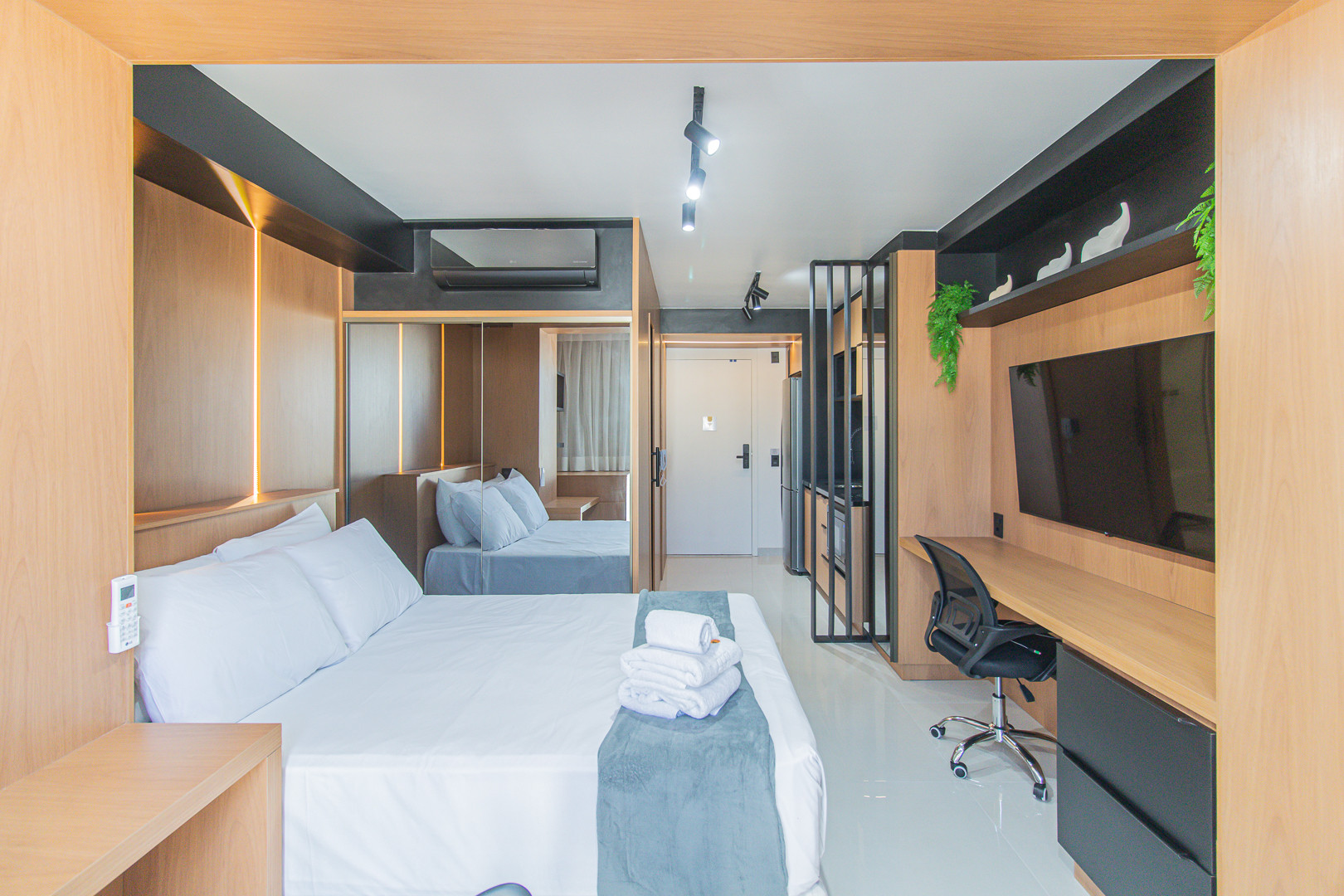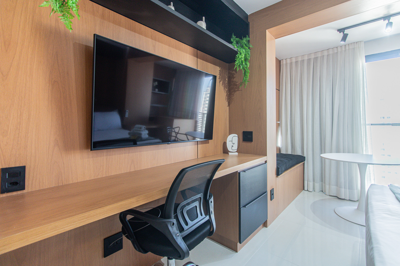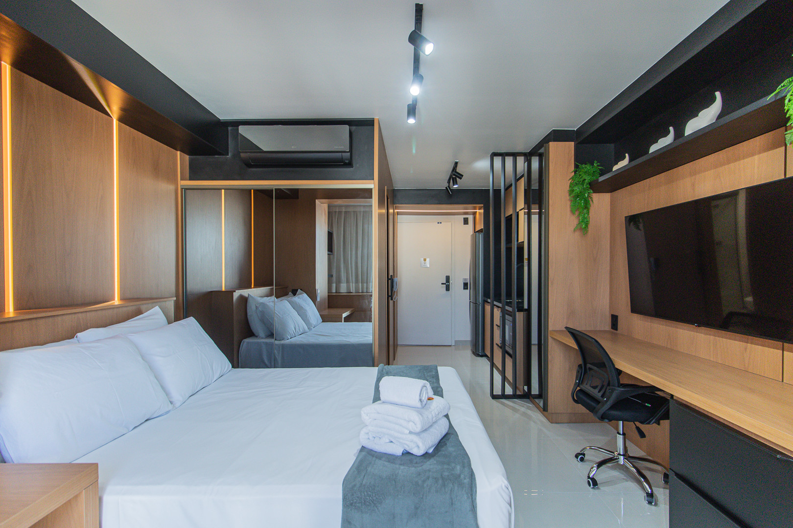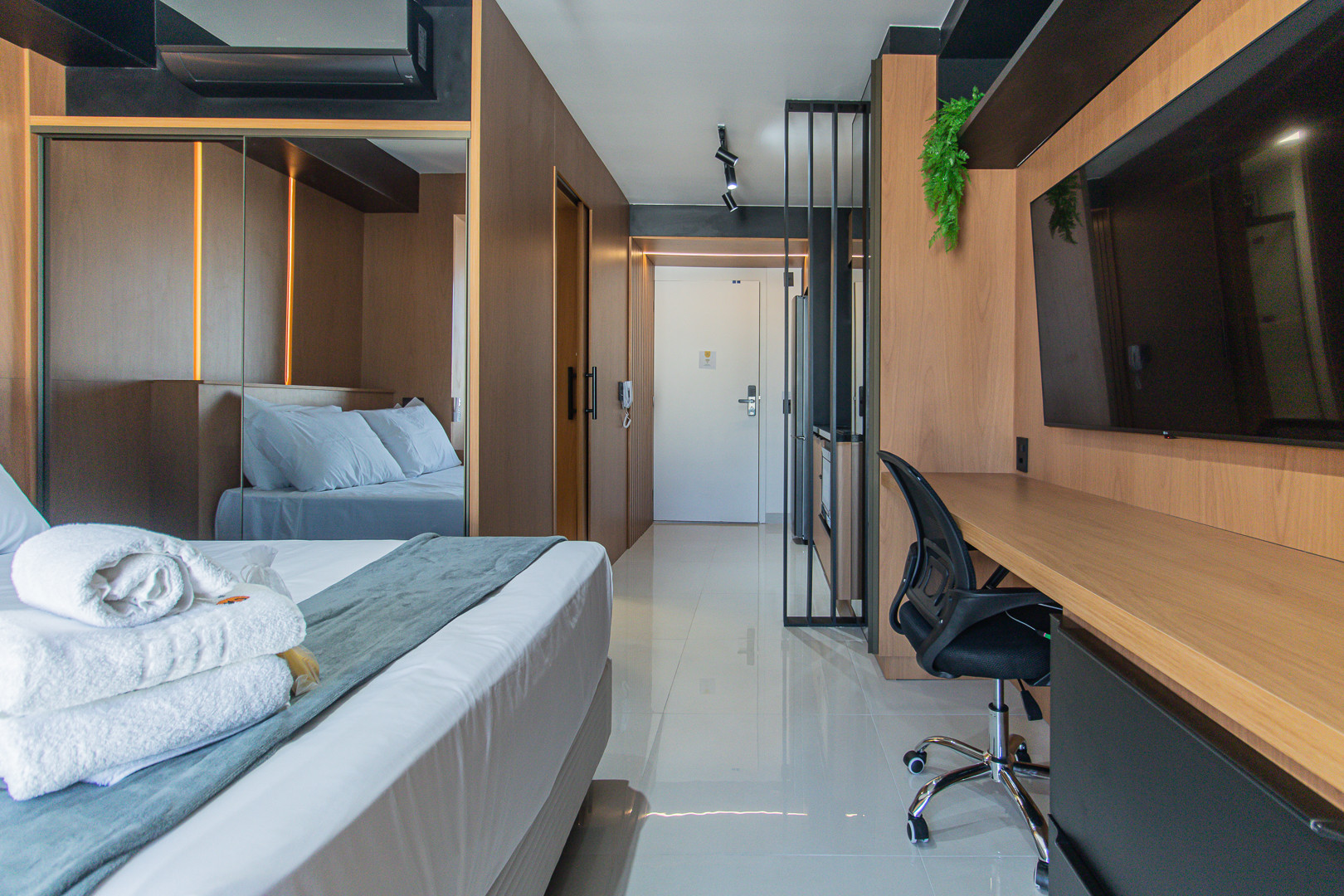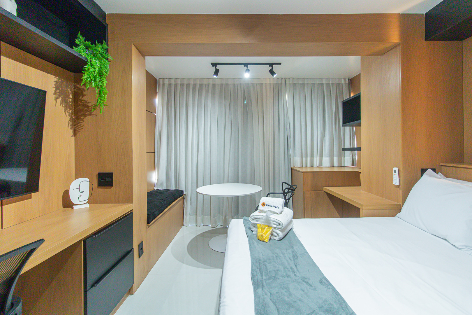 Lo studio a São Paulo ha 1 camera(e) da letto e capacità per 2 persone. Alloggio di 18 m² arredato con gusto e nuova costruzione. Si trova a 60 m dalla stazione degli autobus "Av. Pompeia, 588", 73 m dal supermercato "Supermercado Pão de Açúcar", 74 m dalla stazione degli autobus "Av. Ministro Ferreira Alves, 458", 99 m "Vila do Chaves Café", 270 m "Di Carmo Cantina Pizza Bar", 300 m "Santa Fé O Cupim", 300 m "Granno Doro Cafés Especiais", 500 m "Angusteria Pompeia", 600 m "Hospital São Camilo - Unidade Pompeia", 650 m dal supermercato "Supermercado Cavalo de Ouro", 800 m "Allianz Parque", 1 km metro "Estação de Trem Água Branca", 2 km "Parque da Água Branca", 2 km metro "Estação de Trem Palmeiras - Barra Funda", 2 km dalla stazione degli autobus "Terminal Rodoviário Barra Funda", 3 km dall'aeroporto "CCR Saude Aeroportos", 9 km dall'aeroporto "Aeroporto Campo de Marte" e si trova in una zona ben comunicata zone e nel complesso residenziale.Ha ascensore, terrazza, ferro da stiro, accesso internet (wifi), asciugacapelli, balconi, palestra, aria condizionata, piscina in comune, 1 Televisore.La cucina americana, a induzione, è attrezzata con frigorifero, microonde, stoviglie/posate, caffettiera, tostapane, spremi agrumi, fornello, piatti e ciotole.