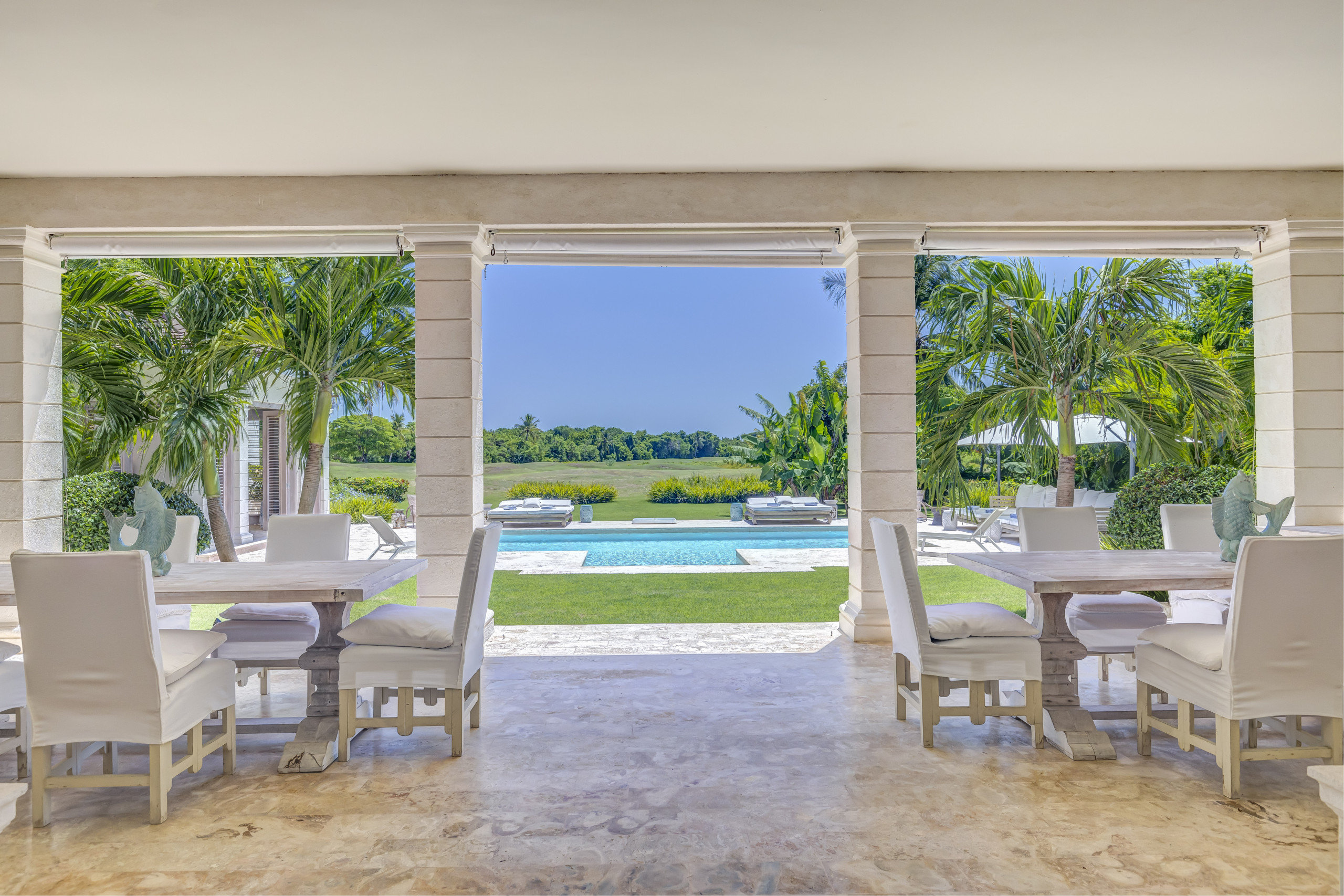La villa a Punta Cana ha 6 camera(e) da letto e capacità per 14 persone. Alloggio, posizionato in prima fila del campo di golf, con vista al giardino e al campo di golf. Si trova a 50 m dal campo di Golf "La cana Golf Course", 500 m dalla spiaggia di sabbia "La Cana Golf Club", 500 m "Mare Restaurant", 500 m "El Grill", 3 km "Aeropuerto de Punta Cana", 3 km della città "Punta Cana Village", 4 km dal supermercato "Supermercado Nacional", 9 km "Noah Marina", 9 km "Barbudo".Ha giardino, giardino arredato, terrazza, lavatrice, asciugatrice, ferro da stiro, accesso internet (wifi), asciugacapelli, balconi, aria condizionata, parcheggio all'aperto in in struttura, 10 ventilatori, 7 Televisori, tv satellitare (Lingue: Spagnolo, Inglese).La cucina indipendente, a gas, è attrezzata con frigorifero, microonde, forno, congelatore, lavastoviglie, stoviglie/posate, utensili da cucina, caffettiera, tostapane e spremi agrumi.
